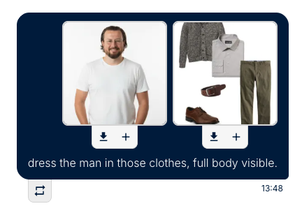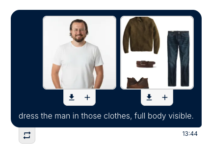 Upload a person and a clothing photo - and Prompt Based Edit will seamlessly dress them in the outfit.