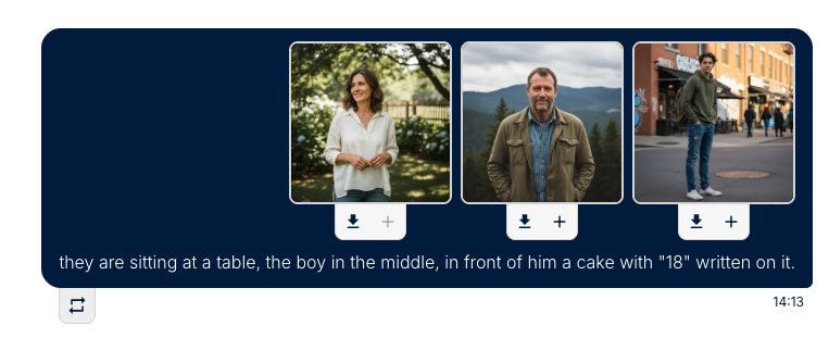 You can even merge multiple people from different images into a single, coherent photo - like a family sitting around a birthday cake, or a group of friends on vacation.